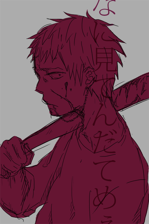 喧嘩相手にバットか何かで殴られそうになる神崎くんをかばう城山くん、ちょっと漫画チック。を描いたつもりですが…